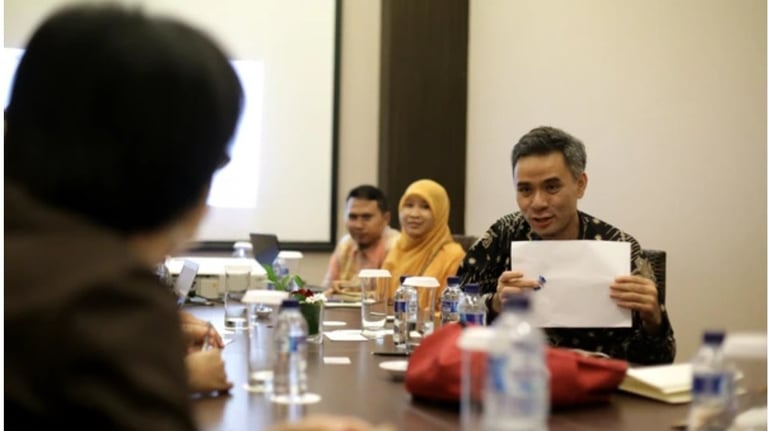 Indonesian trainer leading a digital marketing workshop with attentive participants